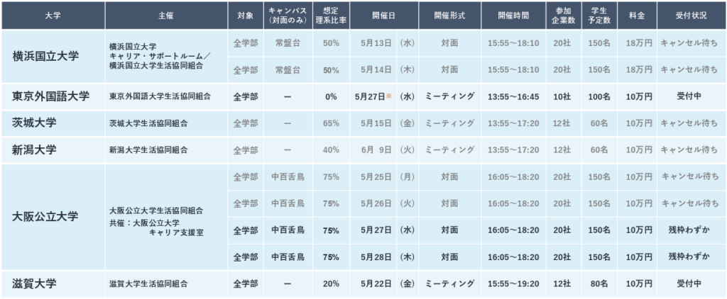 ※ご出展は各大学、各1日程までとなります。